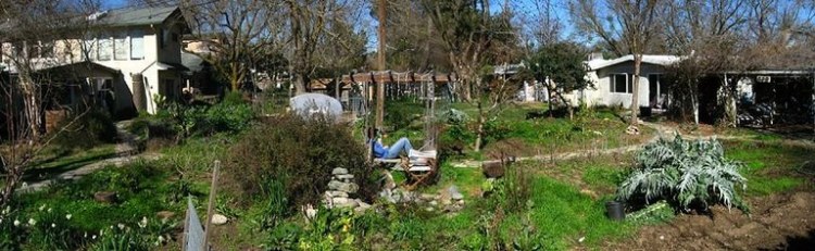 Since 1986, the community has grown to 19 houses by a process of adding one house at a time as they become available, taking down the fences between them and integrating the backyard landscaping. We have also added three houses from across the street. Currently, approximately 60 adults and 5-10 kids (depending on the year) reside here. The ownership structure of the houses is diverse – some of the units are owned by community residents, some by local and absentee landlords, and others as partnerships of former/current tenants in the community.