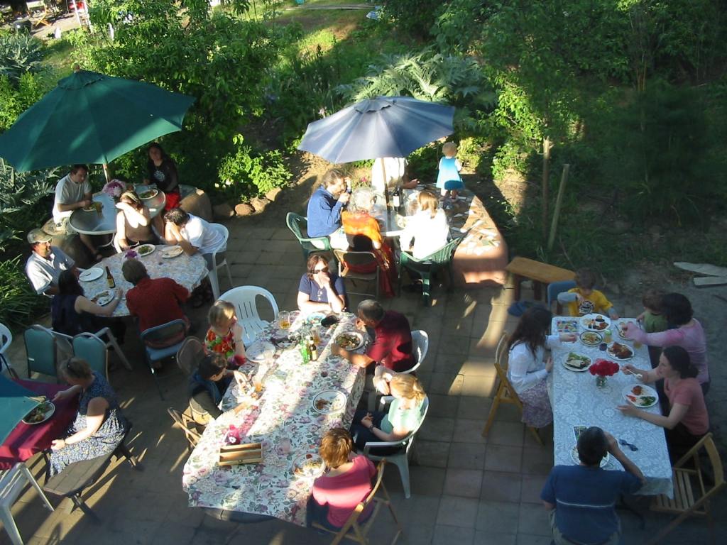 Even though it arose in a much different manner than other communities, N Street Cohousing has all the attributes of a classic cohousing community. We live together as an intentional community, sharing much of the joys and pains of our lives with each other. We support each other in difficulty and celebrate in success. We sometimes vacation together. We have even been known to fall in love and marry each other. However, we live in our own homes and have our own yards (though without any fences). Each of us can be private when we want to be and each household sets its own culture for visiting, borrowing, and participating.